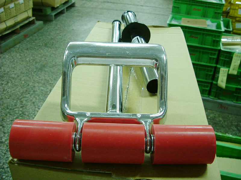 • Rodillos de goma anchos de tres segmentos y ejes empotrados evitan arañazos o dejar marcas en pisos y paredes.