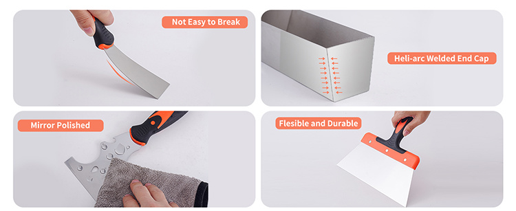 Además de la excepcional calidad de las herramientas, este kit premium para paneles de yeso está diseñado pensando en la versatilidad, lo que lo hace adecuado tanto para contratistas profesionales como para entusiastas del bricolaje por igual. Ya sea que estés embarcándote en un gran proyecto de renovación o abordando reparaciones más pequeñas en casa, estas herramientas están diseñadas para adaptarse a una variedad de aplicaciones. Los diferentes tamaños de raspadores permiten realizar trabajos detallados en esquinas y bordes estrechos, mientras que las cuchillas más grandes son perfectas para cubrir áreas extensas de manera rápida y eficiente.