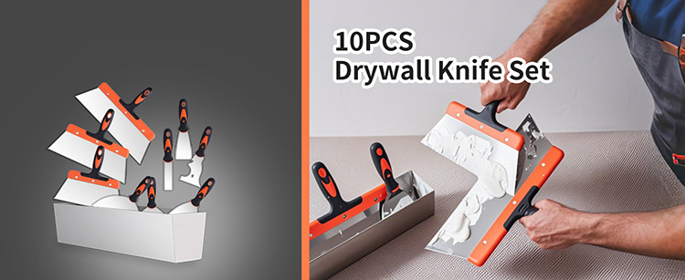 Kit de herramientas premium de 10 piezas para paneles de yeso, con rascadores de acero inoxidable, cuchillos para enmascarar y bandeja para lodo, para reparaciones de paredes sin costuras